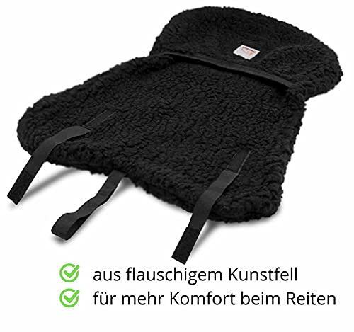 Reitsport Amesbichler AMKA saddle seat cover made of faux fur black saddle warmer saddle fleece cover saddle cushion Please note that the seat cover is attached to the saddle.