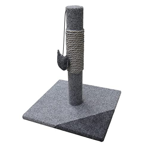 Rosewood Charcoal Felt Cat Scratching Post, 37cm Tall with Stylish Dark Grey Design, Includes Cute Cat Hanging Toy with Catnip, Durable & Engaging