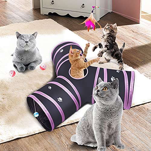 【Best Toy】 – Cat tunnel with Y-shaped design, it has 3 spacious connected tunnels, and a hole in the middle, allows the cat to enter and exit freely. It can increase the mystery more than the straight type and provide more entertainment space. Attract pets to hide, stalk, pounce and chase with each other, it can provide unlimited fun for your pets.