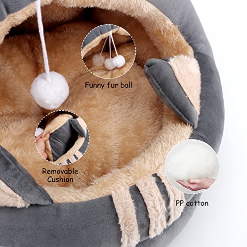 SEMI-CLOSED DESIGN: Our lovely cat cave is a warm and windproof sleeping nest for cats. Semi-closed design ideal for pets who love to curl up,not only can relieve your lovely pet anxiety, but also create a sense of adequate security.A hanging furry ball is placed inside, which can attract the cat’s attention and make the cat get used to his new nest.