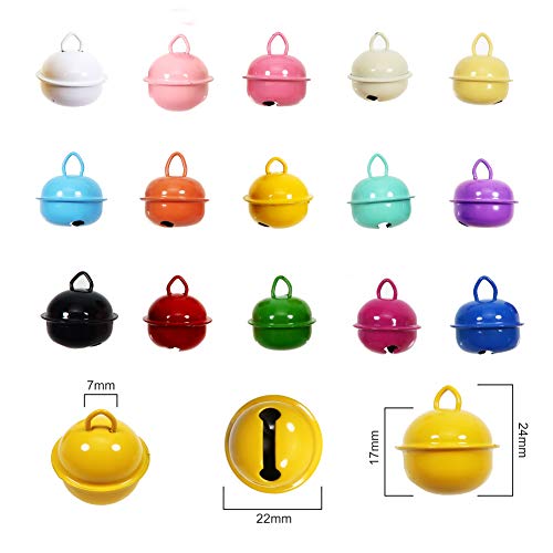 15 DIFFERENT COLOURS:Multi Colors include pink,white,yellow,purple,green,black and so on,each colour includes 1pcs.These Bells are in rich color to meet you different needs and bring you craft project more interesting choices