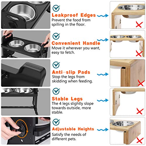 Versatile & Safe: Anti-slip Pads of the stand help to stop the legs from skidding when feeding; The Leakproof Edges help to prevent the food from spilling in the floor; What’s more, the convenient handle is easy to fetch when you want to move it.