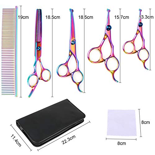 【Pet Grooming Scissor Kit】 Includes 1x Pet Curved Scissor, 1x Pet Thinning Scissor, 2x Pet Straight Scissors, 1x Pet Combing Comb, 1x Wipe Cloth and 1x Leather Case. It is the best gift for Christmas and New Year.