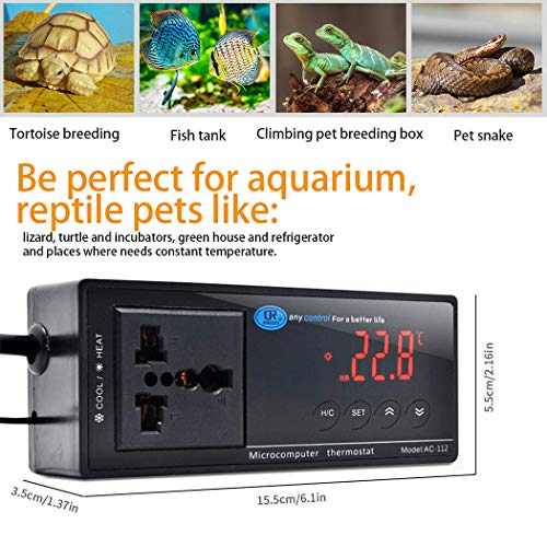 🦎 [EASY OF MIND] — LED display ,friendly interface, easy to read, operates,and set theparameters, Can choose COOL or HEAT mode Can switch between °C or °F, Controller features a convenient hanging tab.