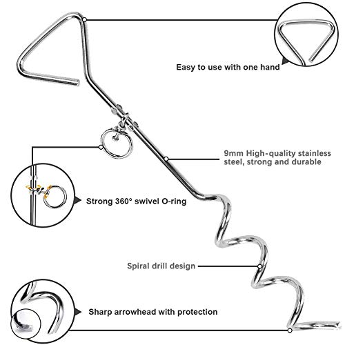 Easy to use:Just screw the stake into the ground like a corkscrew and attach the collar to the chain,the clips ensure easy on/off connections.saving time and effort.