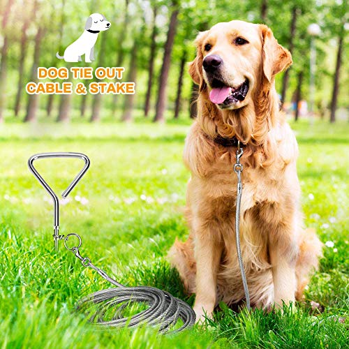 Keep Your Furry Friend Safe:It contains 16 inches spiral stake and a standard 16 ft cable. Gives your dog the room to move around freely while keeping him safe when in the yard, park or outdoor place. This dog tie out cable support to 130 lbs, suitable for small, medium and large dogs.