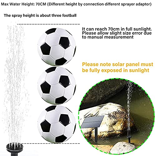 [4 Nozzles Solar Water Pump]4 types of heads for different water flow and water height. Solar water fountain pump will start working in 3 seconds once being exposed to sufficient sunlight. Solar pond fountain water up to 23.6 inch-27.5 inch, line length: 10Ft. water flow:0-160L/H. The height of water depends on the strength of the sunlight.