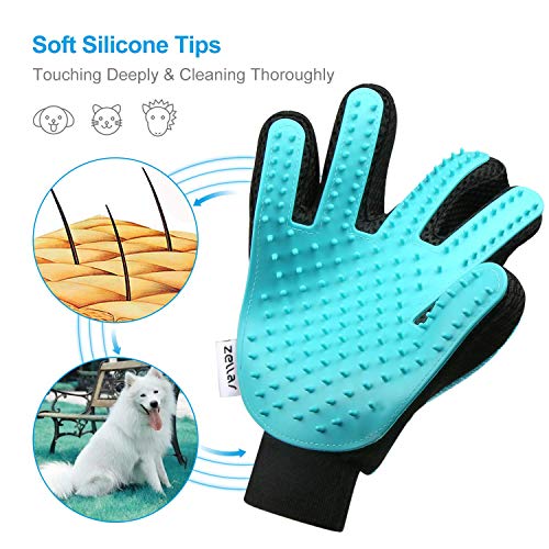 Multi-functional Design – Zellar pet grooming glove with 2-in-1 design can meet your different needs. You can use it for dog bath/shower, grooming or massage. One side has more than 180 soft silicone tips help you to remove loose pet hair easily, and the other side has velour which helps to collect pet fur/hair quickly.