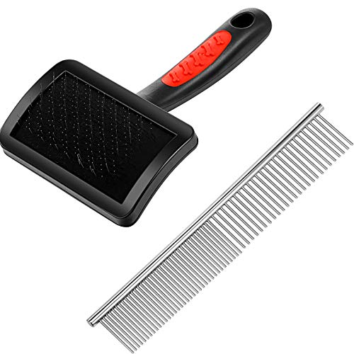 2 Pieces Grooming Slicker Brush Pet Grooming Brush Firm Slicker Brush Stainless Steel Pet Comb for Dogs and Cats
