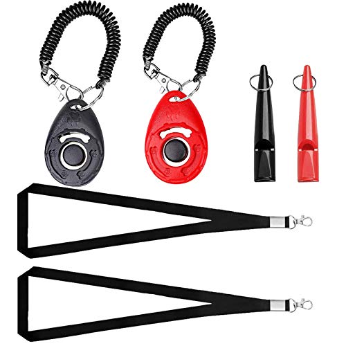 Lanzn 4 PCS Dog Clicker and Whistle Set, Dog Training Clickers Whistle Pet Clicker Trainer Dog Training Tools Puppy Training Clicker Kit Dog Clicker Wrist Strap for Dog Cat Horse Birds Puppy Recall